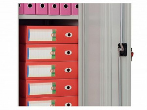ригели из оцинкованной стали и пластиковые втулки обеспечивают бесшумный ход дверей и надежное запирание шкафа