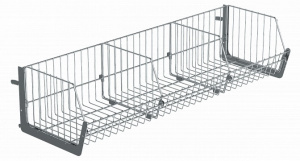 Конструктив изделия предусматривает установку двух и более корзин в единый ряд, что позволяет размещать в корзинах габаритные товары, например, в рулонах. При этом использование проволочных разделителей не обязательно - их установка нужна лишь для разграничения пространства с разносортным товаром.