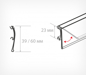 Устанавливается на полки с С-образным профилем на торце: KIFATO, LA FORTEZZA, ALSER, НОРДИКА и подобных. Гибкое крепление обеспечивает откидывание ценника вверх.